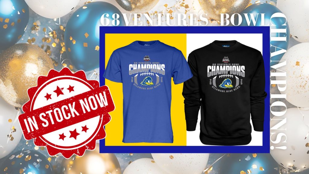 Now Available! So proud of our Blue Hen Football team! In honor of their historic win at the Ventures Bowl, we are bringing in a limited quantity of championship gear including t-shirts, hoodies and crews. Check back soon for availability!